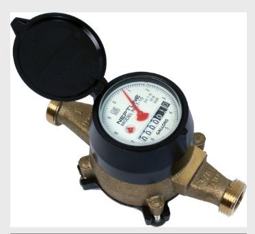The new water meter operates the same as the old meter. The water meter has a wireless device that transmits the meter readings on a licensed radio frequency over a short distance to a handheld or mobile device. Readings are collected once per quarter (billing cycle) by mobile (drive-by) meter reading. This technology has improved the efficiency of the meter reading program.
